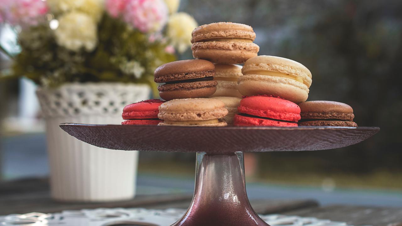 Wallpaper Colorful dessert macaroon in a vase on the table