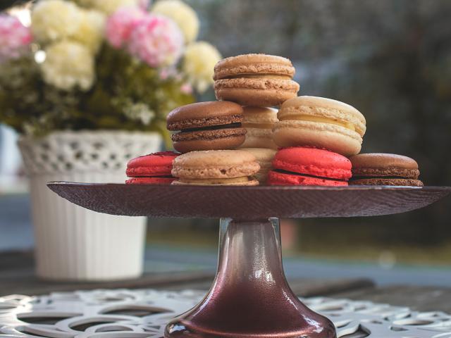 Wallpaper Colorful dessert macaroon in a vase on the table