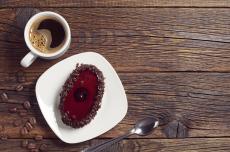 Wallpaper Chocolate cake on the table with a cup of coffee