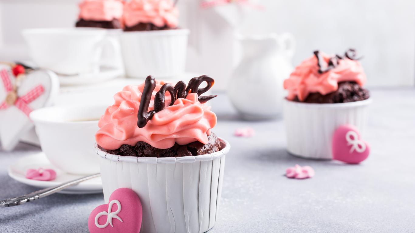Wallpaper Chocolate Cupcakes with Strawberry Cream