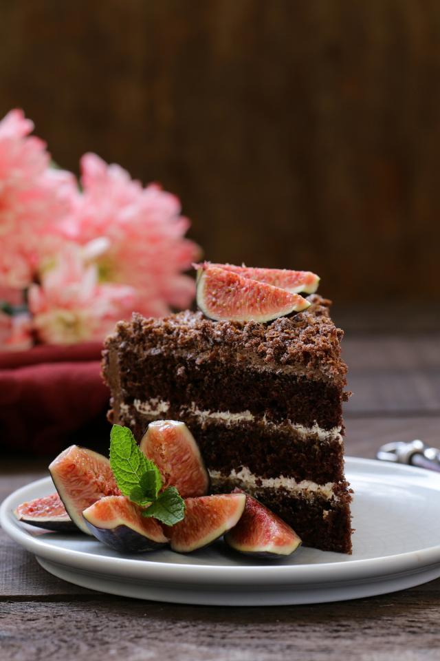 Wallpaper A piece of chocolate cake with pieces of figs