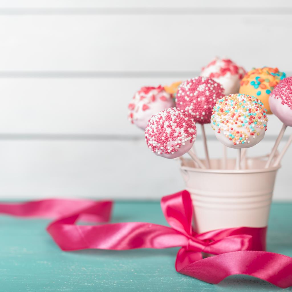 Wallpaper Lollipops in a glass on a table with a pink ribbon bow