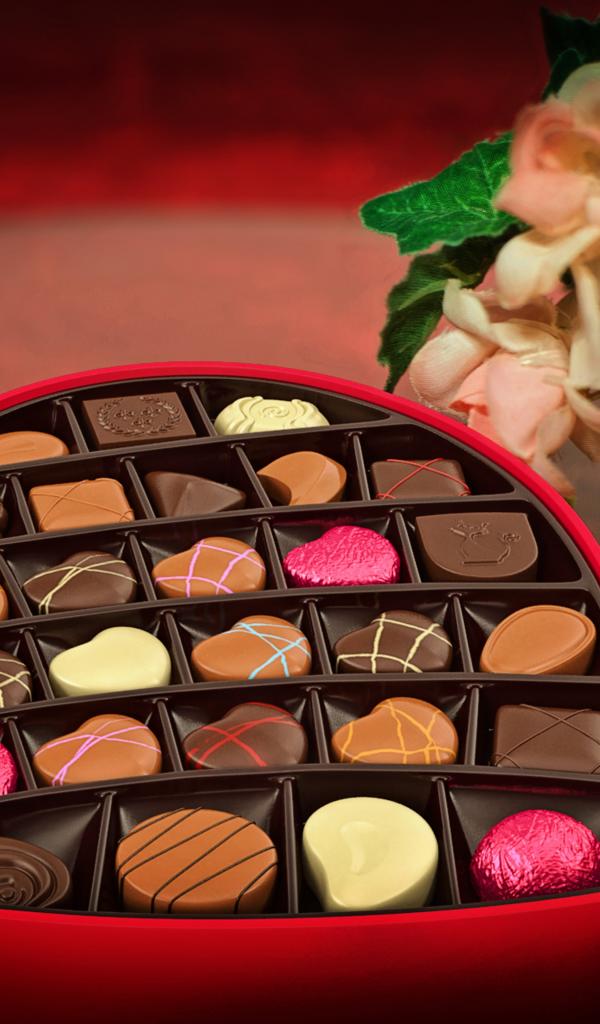 Wallpaper Big Red Heart Shaped Box with Chocolate Candy