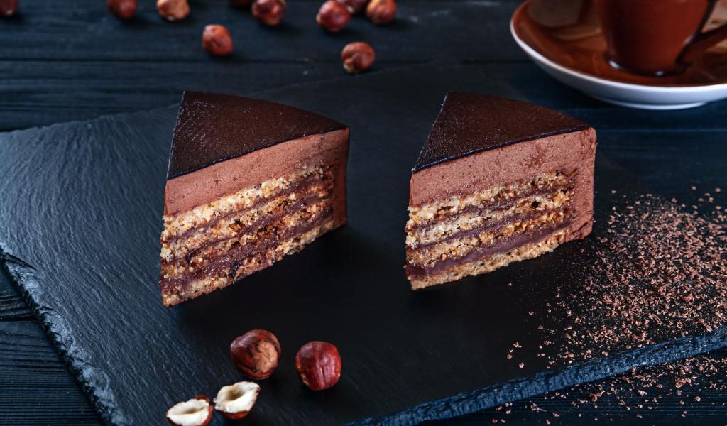 Wallpaper Two pieces of hazelnut cake on the table