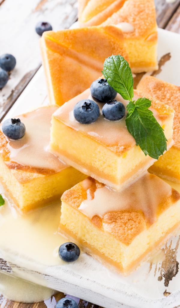 Wallpaper Sponge cakes with syrup and blueberries on the table