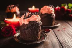 Wallpaper Delicious sweet cupcakes on a table with roses