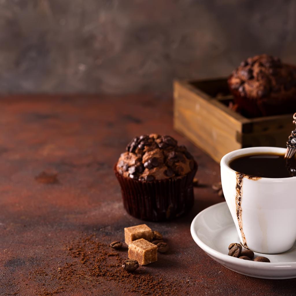 Wallpaper White cup of coffee and chocolate muffin on the table