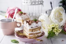Wallpaper Coffee on the table with macaroons, milk and flowers