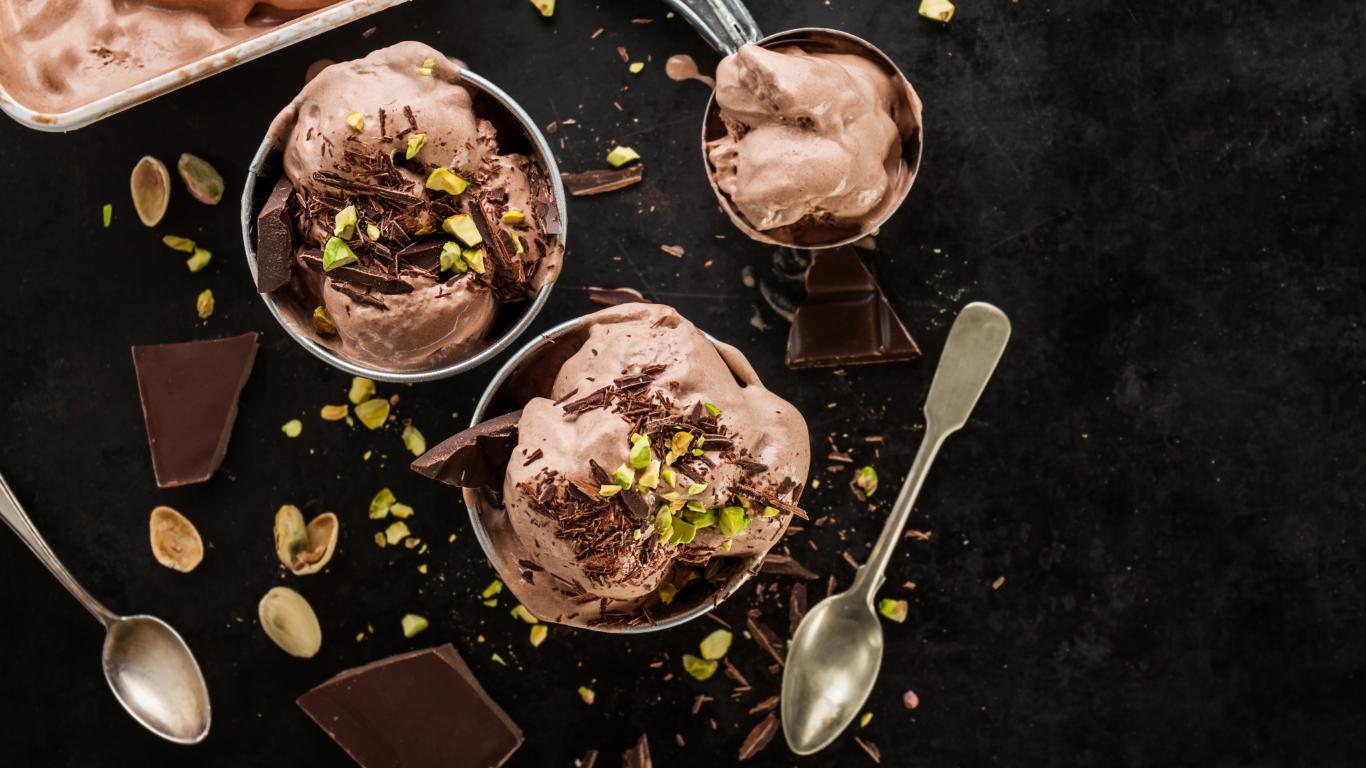 Wallpaper Ice cream with chocolate and pistachios on the table
