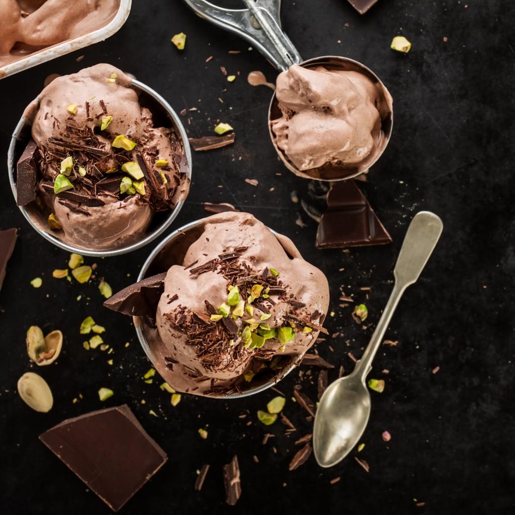 Wallpaper Ice cream with chocolate and pistachios on the table