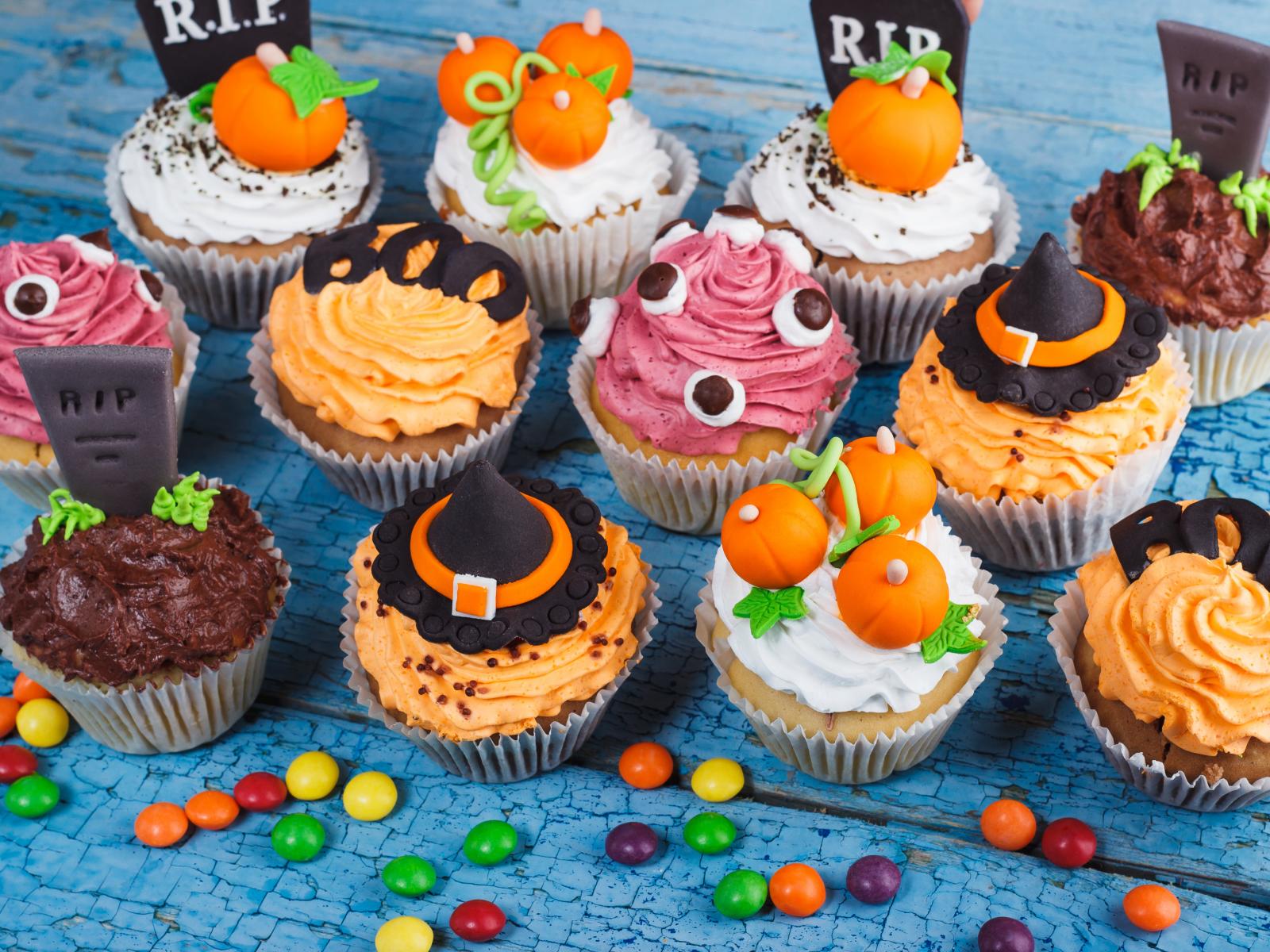 Wallpaper Cupcakes with cream and decorations for Halloween
