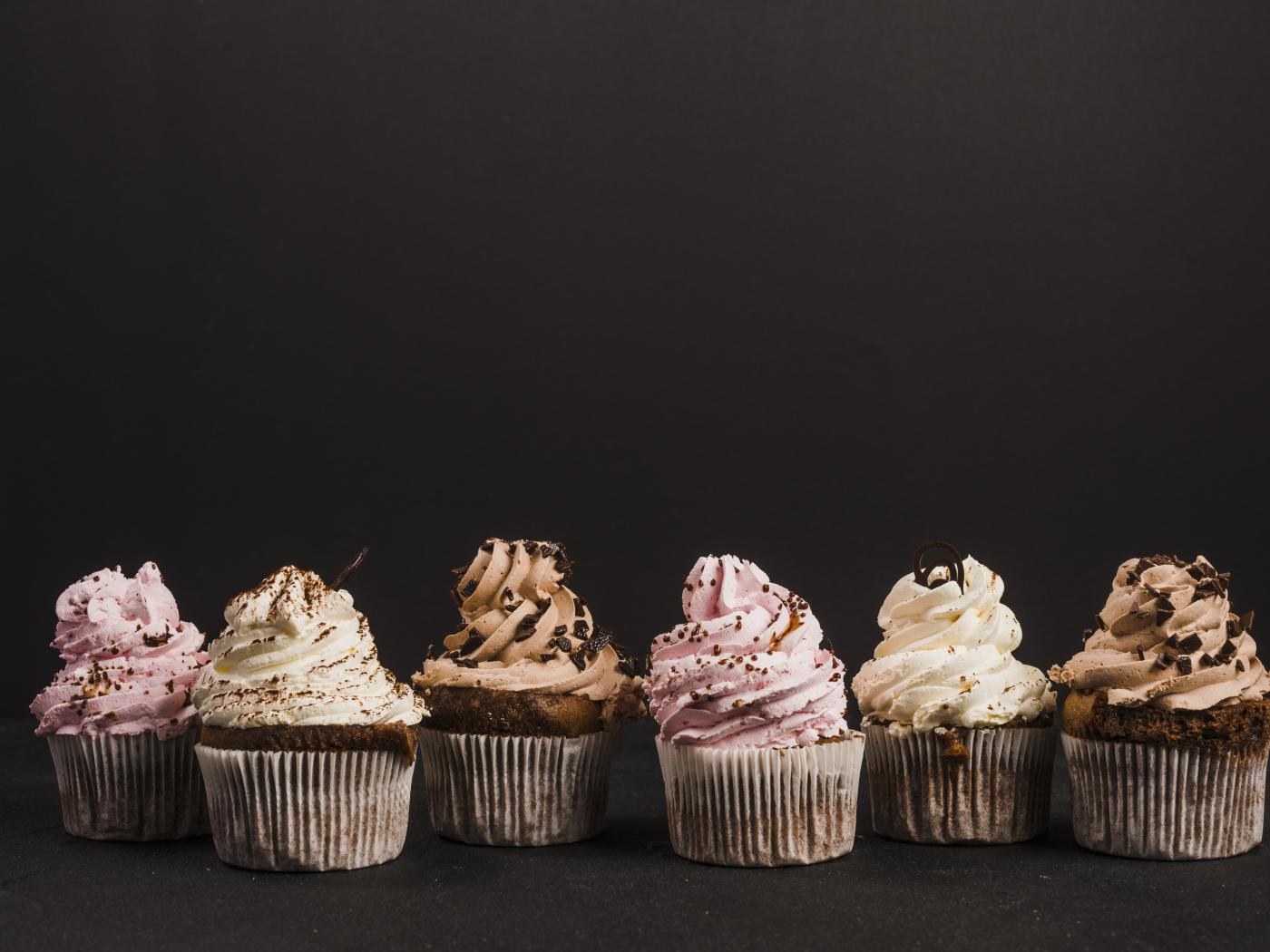 Wallpaper Appetizing cupcakes with cream on a gray background