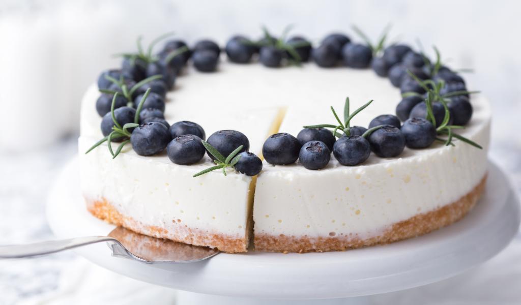 Wallpaper Cheesecake on a plate with blueberries
