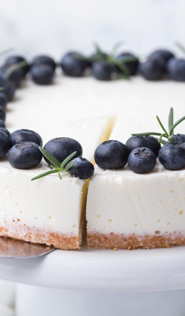 Wallpaper Cheesecake on a plate with blueberries
