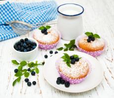 Wallpaper Muffins with icing sugar on a table with milk and blueberries