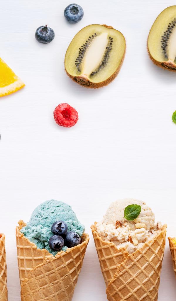 Wallpaper Popsicles in waffle cones on a white plate with berries