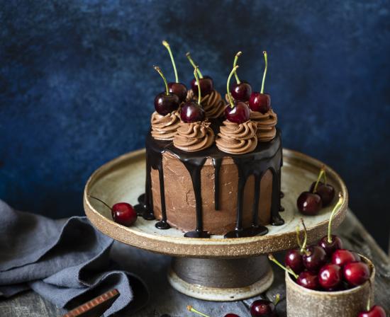 Wallpaper Appetizing birthday cake with chocolate and cherry berries