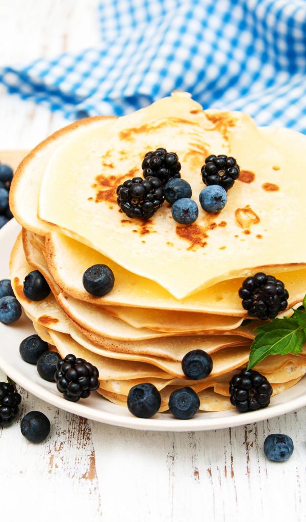 Wallpaper Thin thin pancakes with blueberries and blackberries
