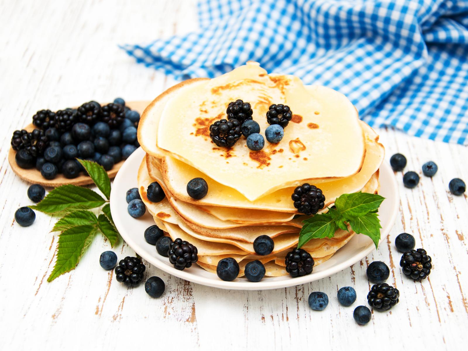 Wallpaper Thin thin pancakes with blueberries and blackberries