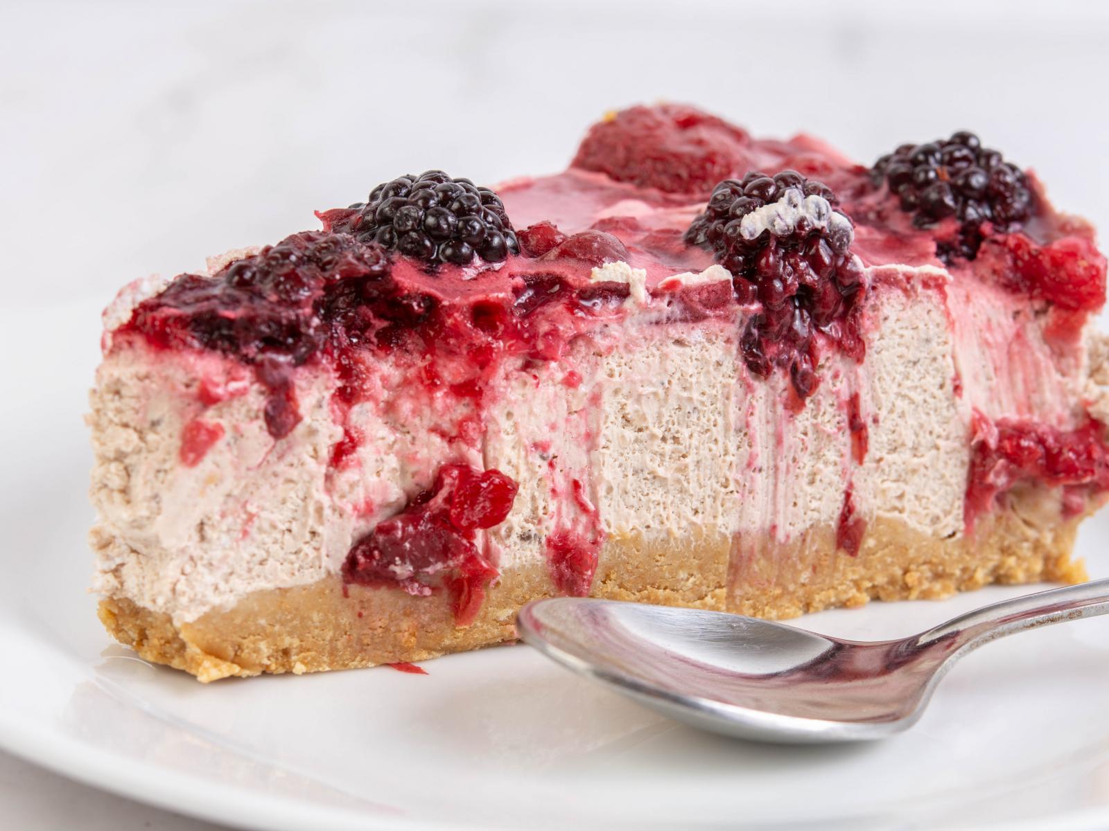 Wallpaper A piece of delicious cheesecake with blueberries