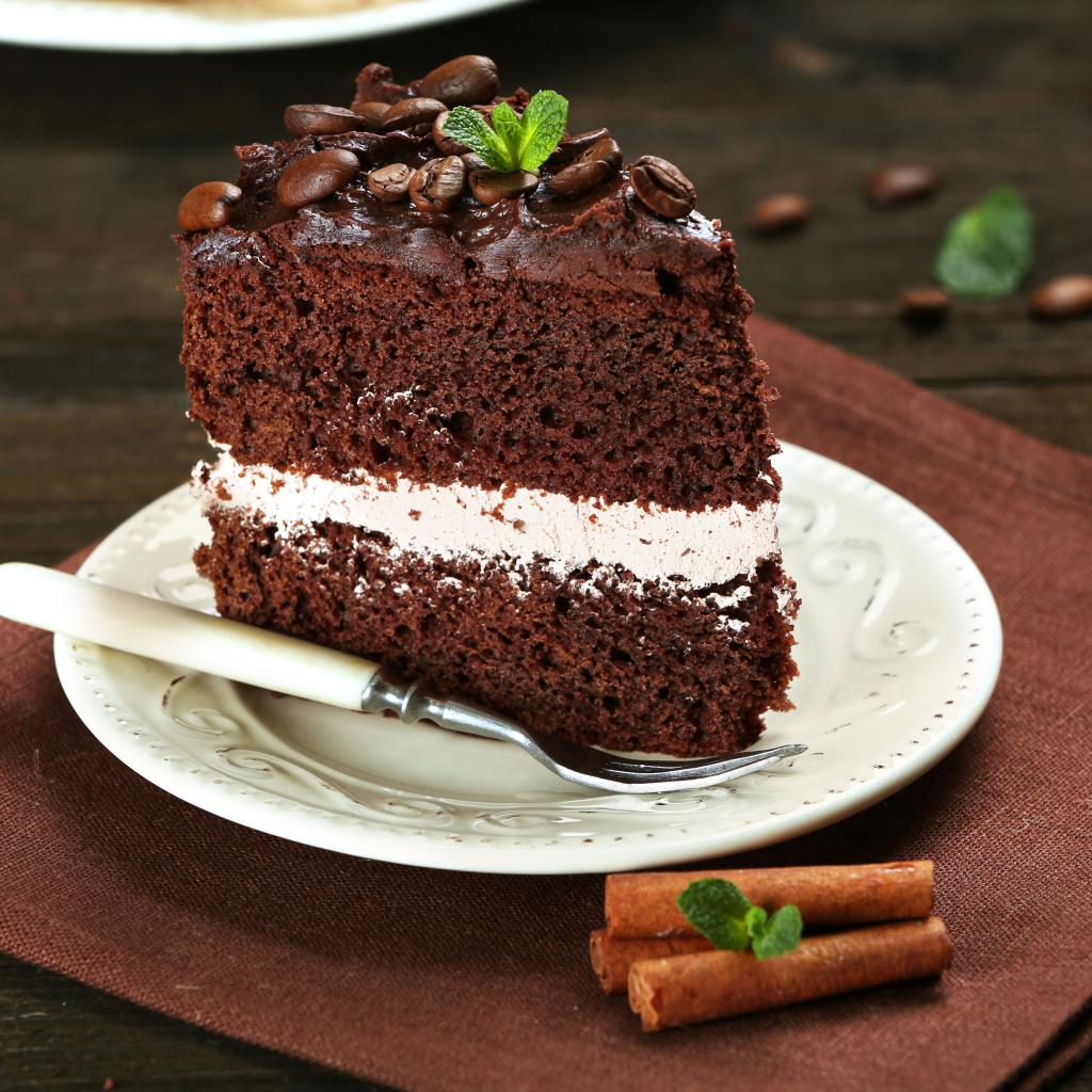 Wallpaper A slice of chocolate cake with cream and coffee grains