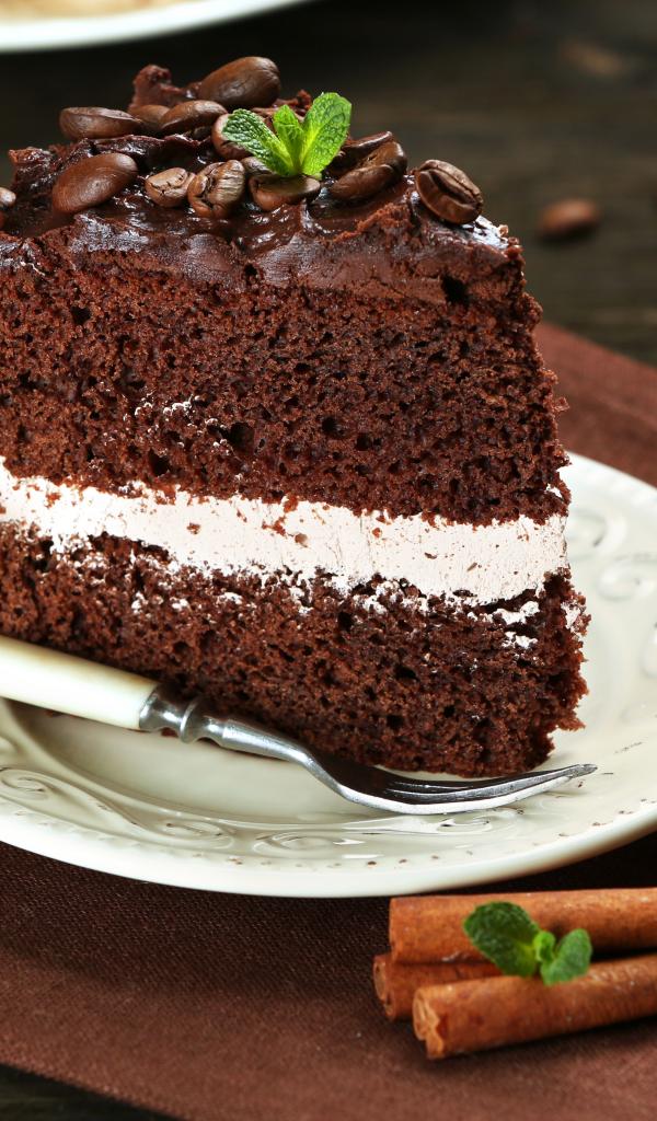 Wallpaper A slice of chocolate cake with cream and coffee grains