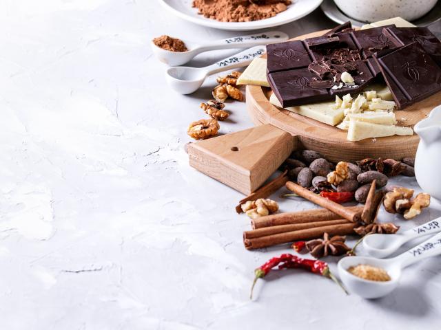Wallpaper Black and milk chocolate on a table with nuts