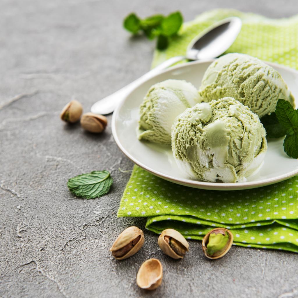 Wallpaper Pistachio ice cream balls on a plate with mint