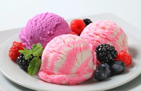 Wallpaper Balls of fruit ice cream on a white plate with berries