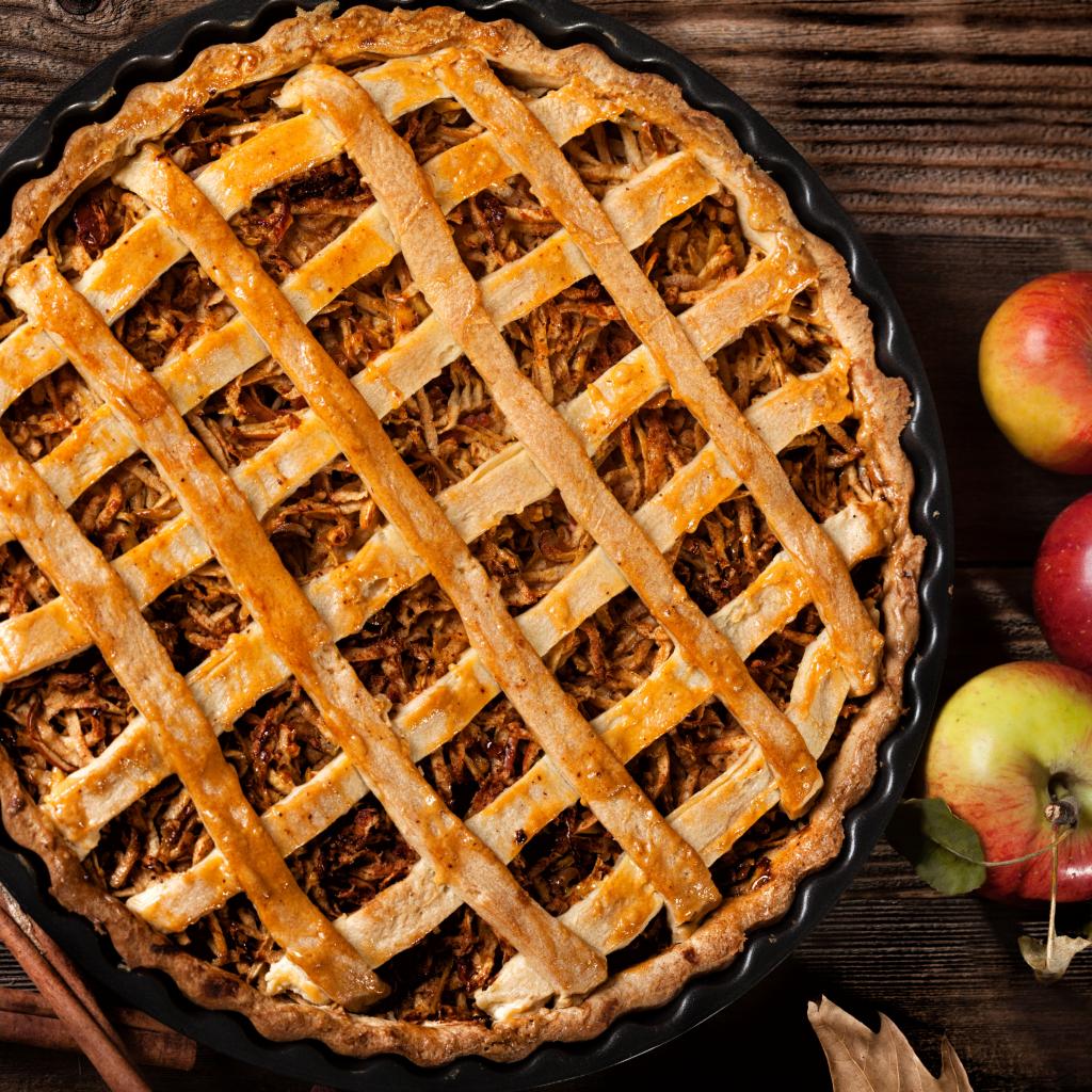 Wallpaper Delicious hot pie on the table with apples
