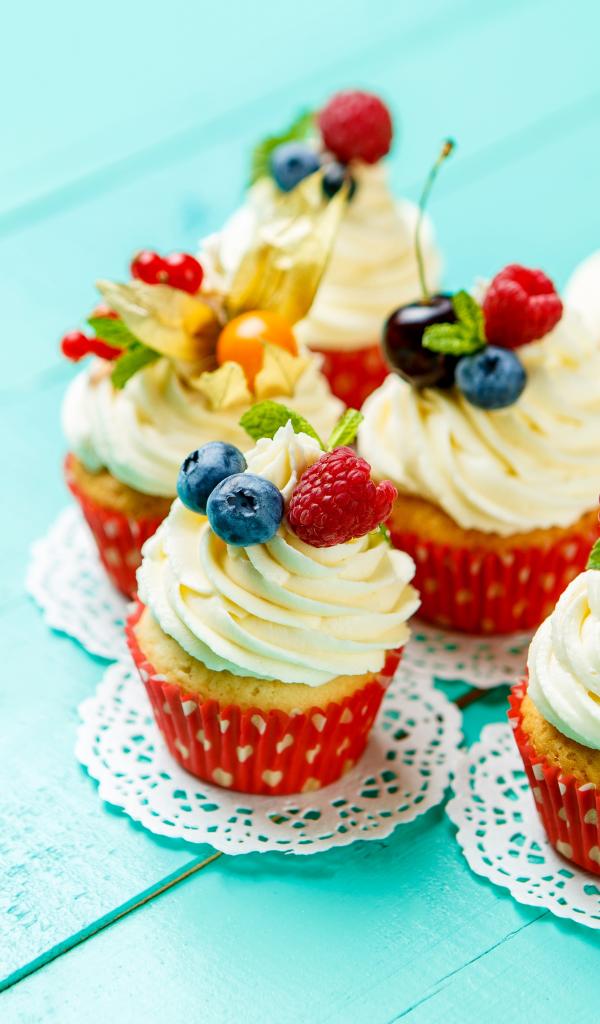 Wallpaper Berry Cupcakes Decorated with Berries