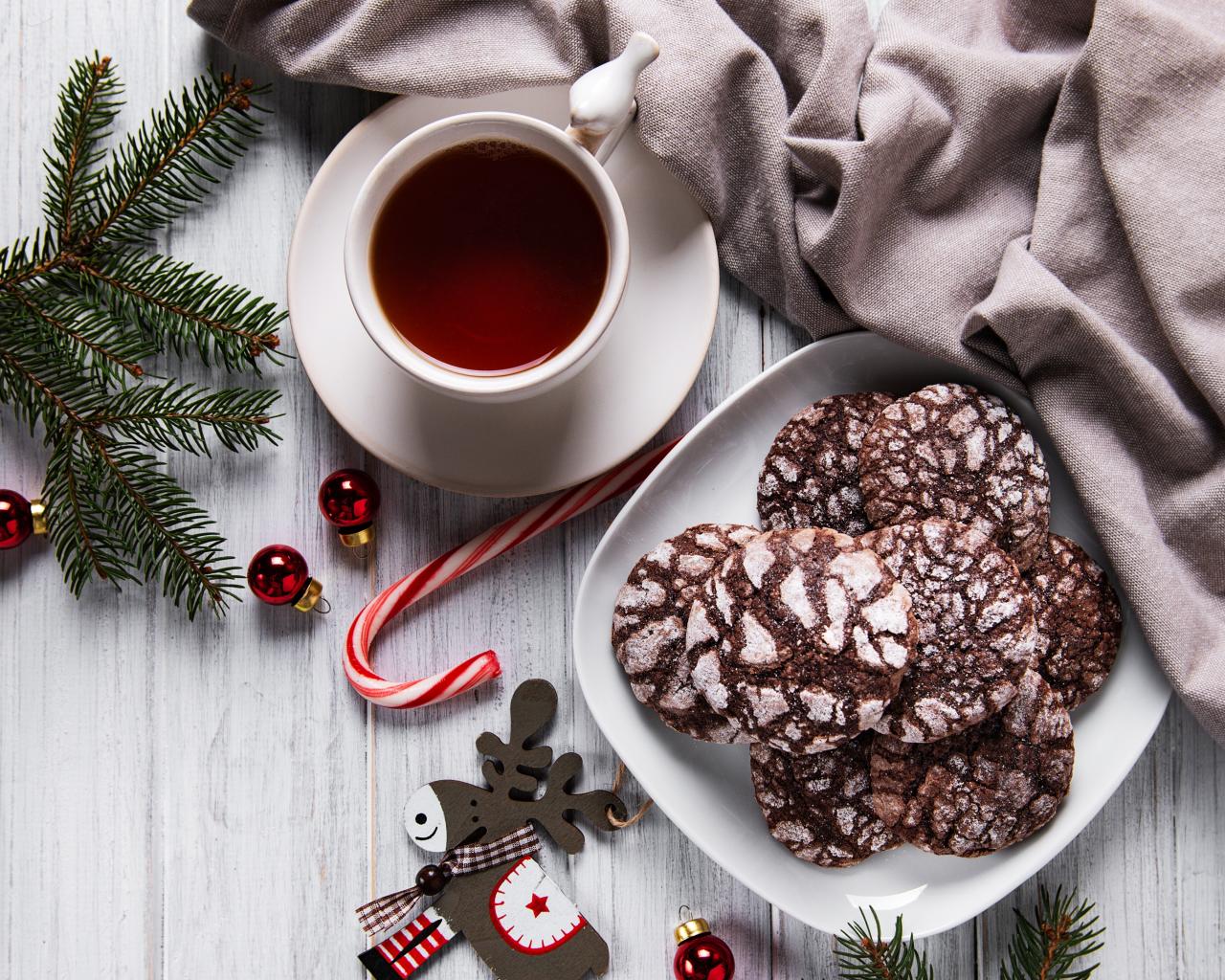 Wallpaper Christmas cookies on a table with tea