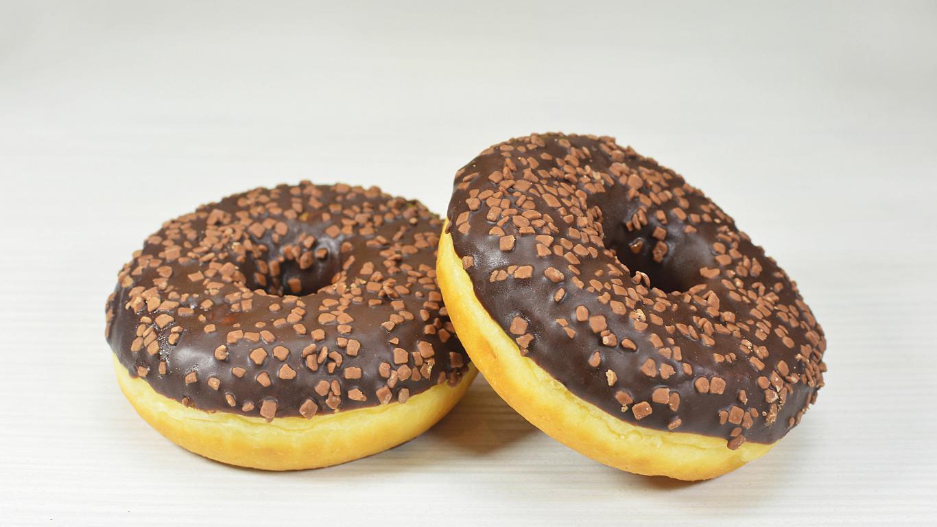 Wallpaper Two sweet donuts with chocolate on a gray background