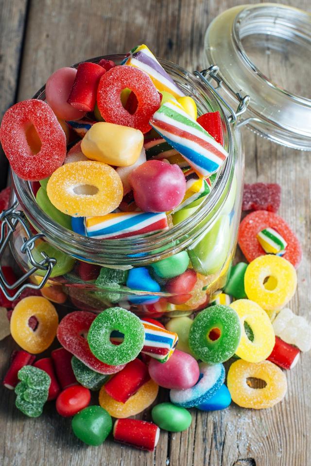 Wallpaper Glass jar with multi-colored jelly candies