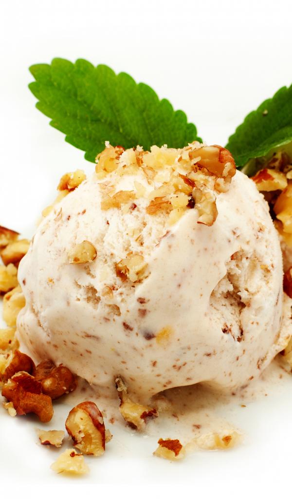 Wallpaper Two balls of ice cream with nuts on a white background