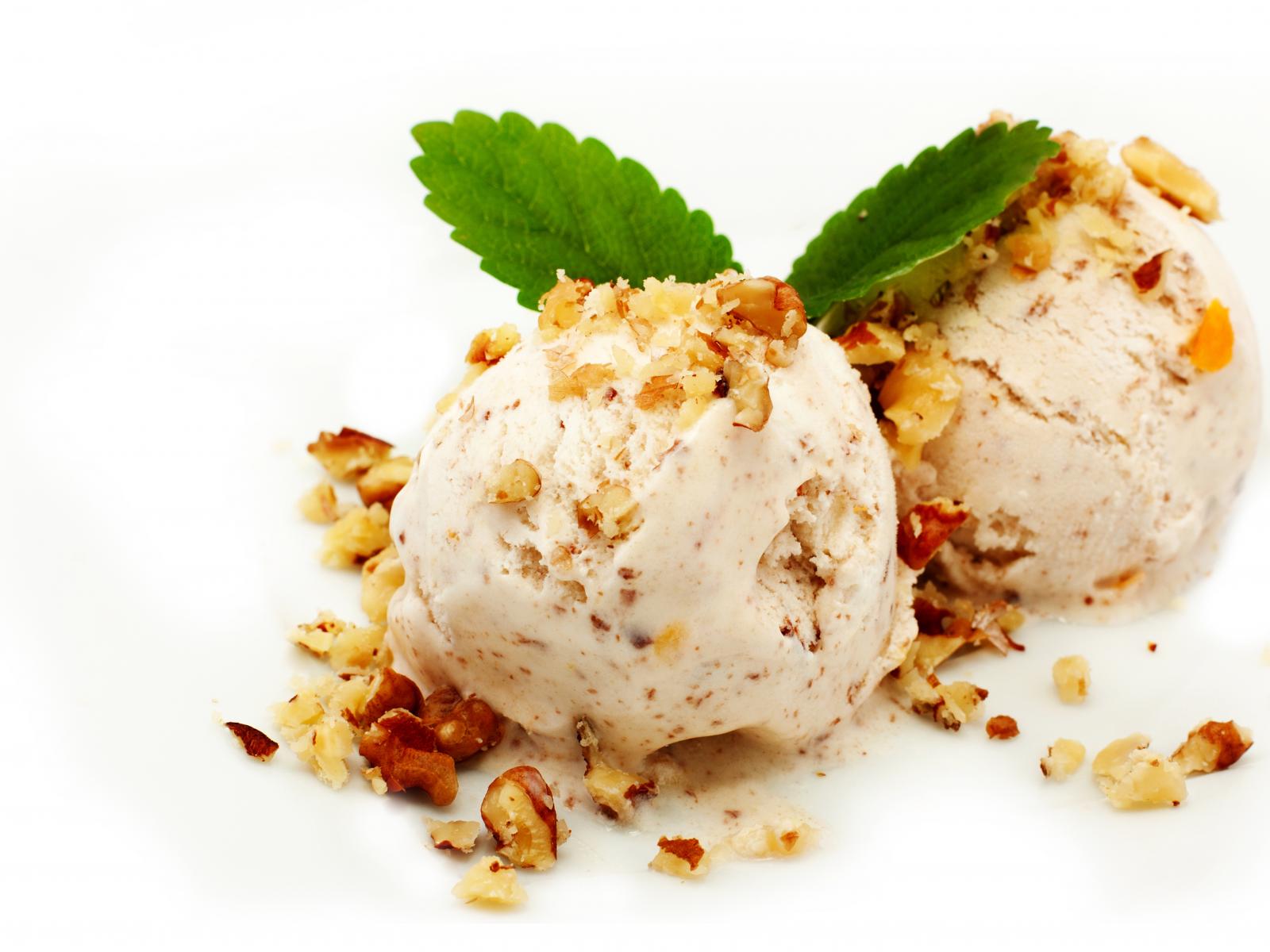 Wallpaper Two balls of ice cream with nuts on a white background