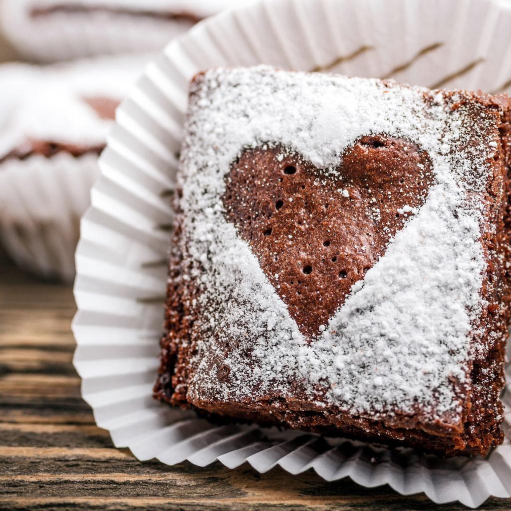 Wallpaper A piece of brownie dessert with powdered sugar heart