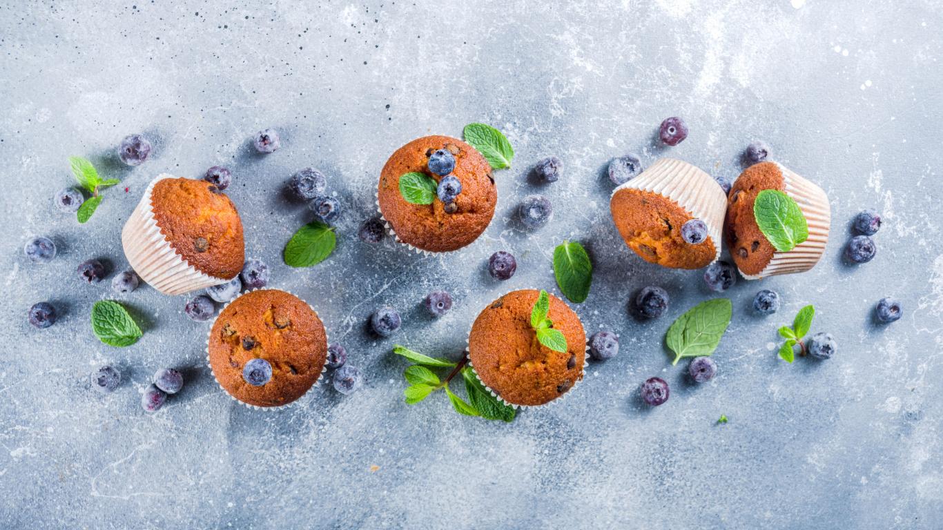 Wallpaper Ruddy cupcakes on a table with blueberries