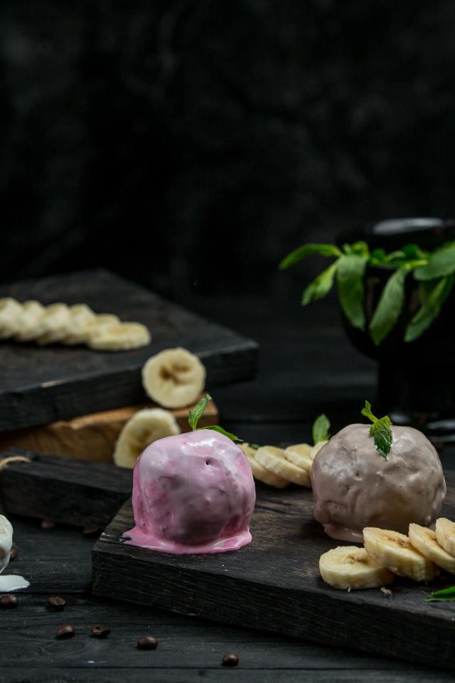 Wallpaper Chocolate, strawberry and banana ice cream balls