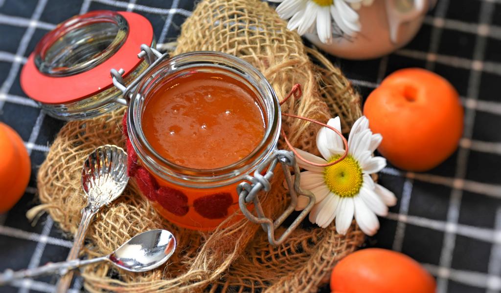 » Wallpaper Apricot jam on a table with daisies