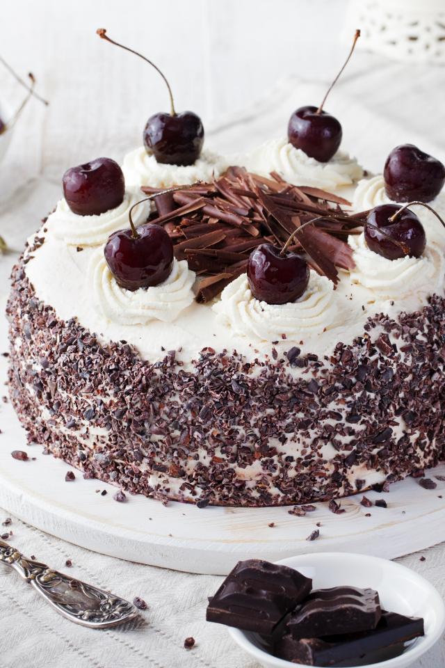 Wallpaper Beautiful cake with cream, chocolate and cherry