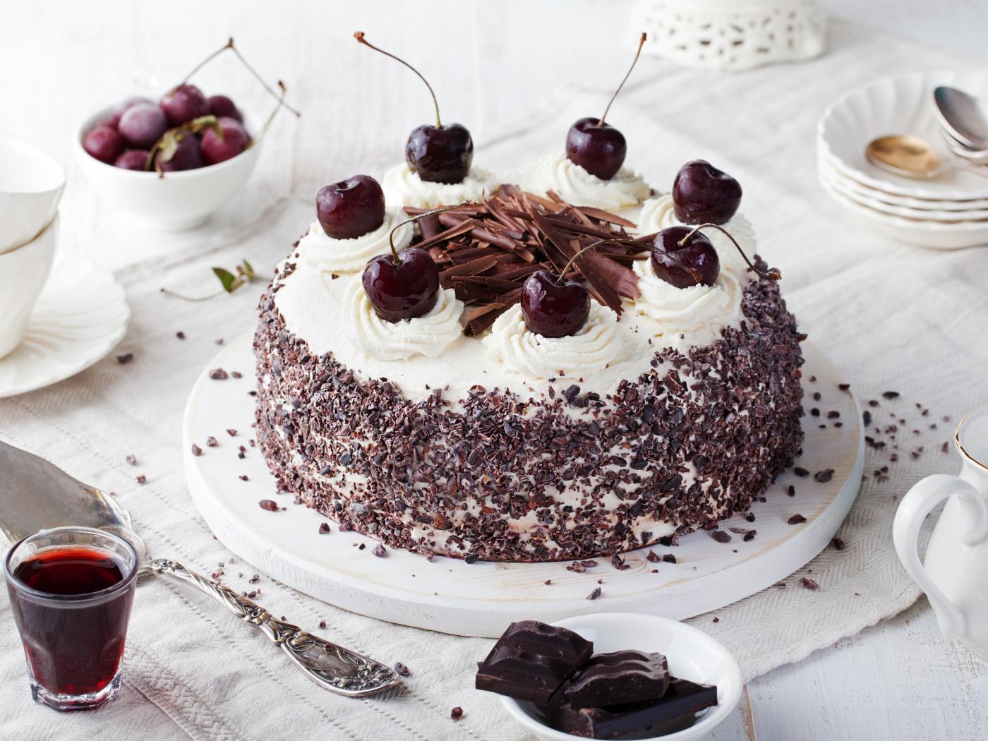 Wallpaper Beautiful cake with cream, chocolate and cherry