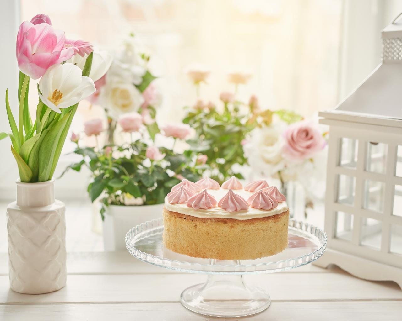 Wallpaper Tasty pie on the table with a bouquet of tulips