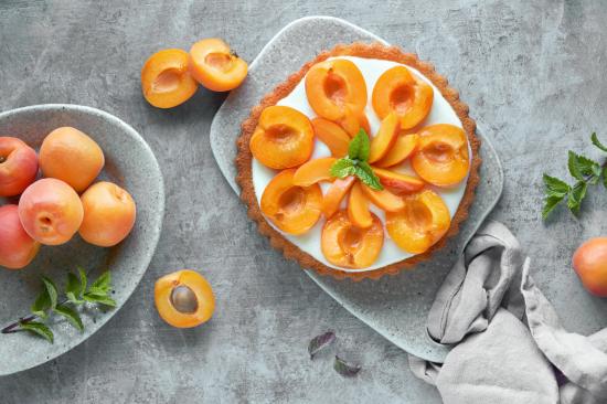 Wallpaper Cream cake with apricots on a table