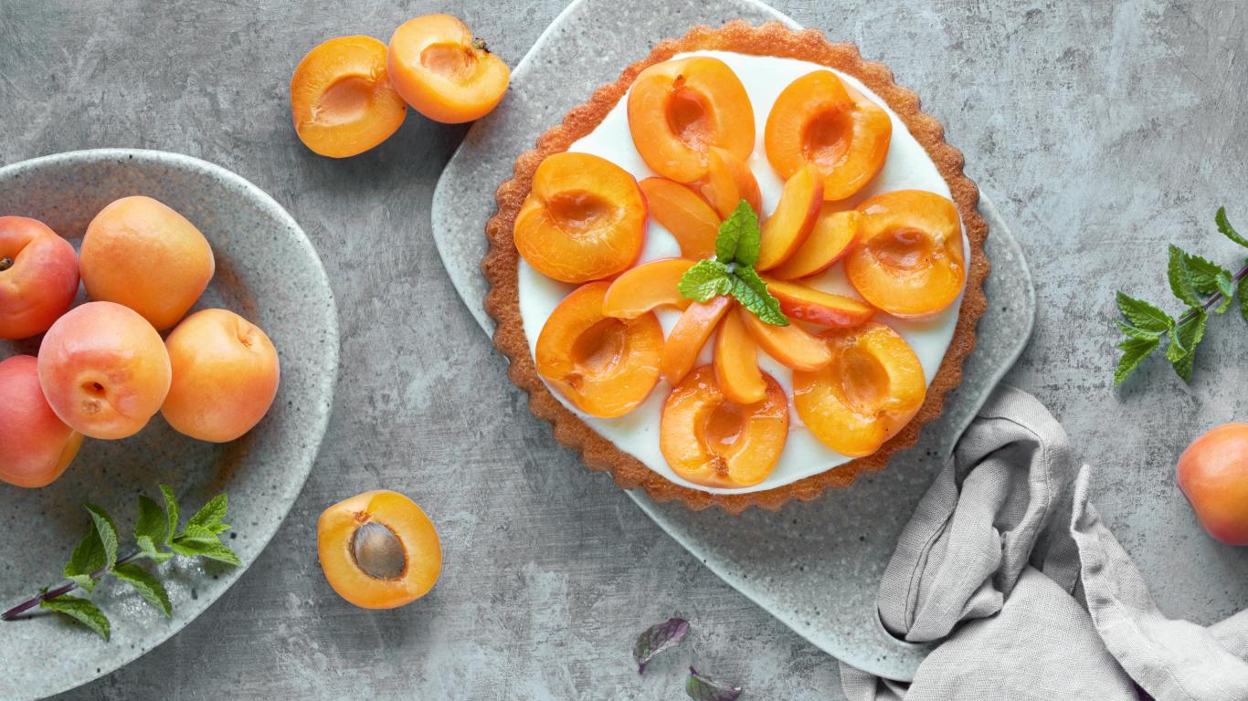 Wallpaper Cream cake with apricots on a table