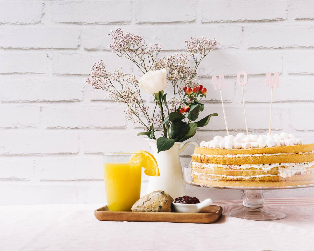 Wallpaper Cake with flowers cupcake and juice for mom