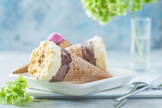 Wallpaper Ice cream cone in a waffle roll on the table