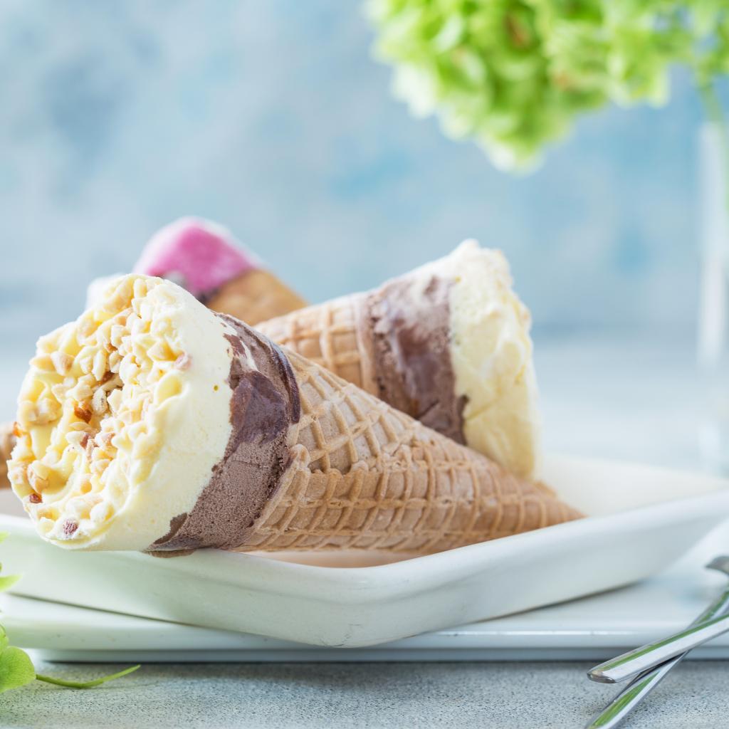 Wallpaper Ice cream cone in a waffle roll on the table