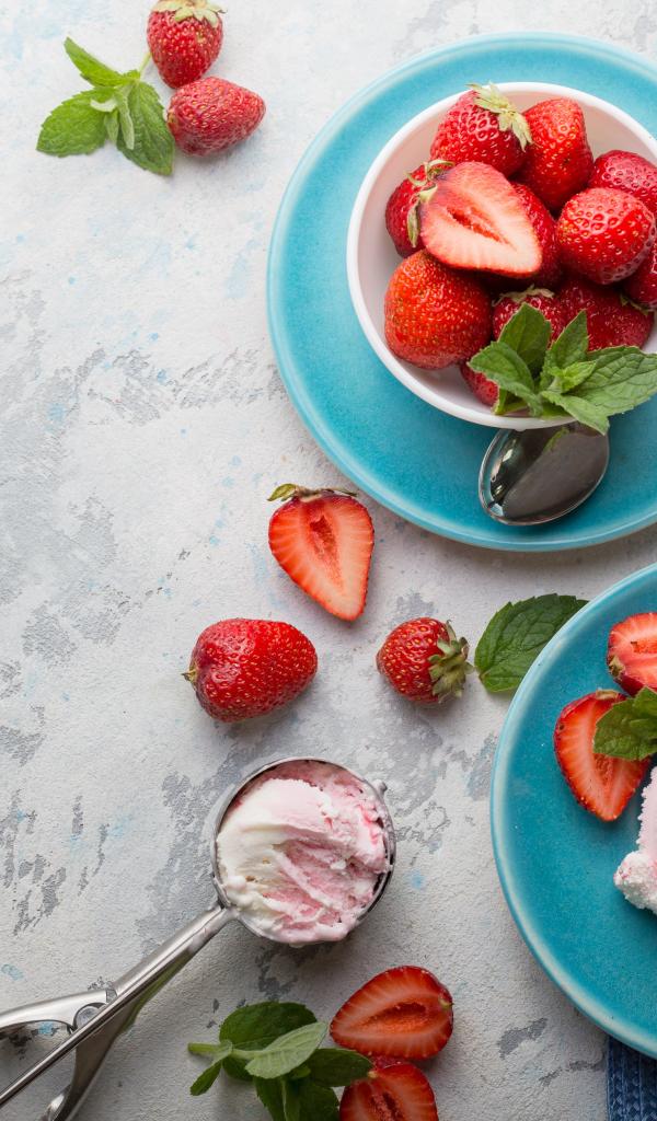 Wallpaper Berry ice cream on a plate with strawberries
