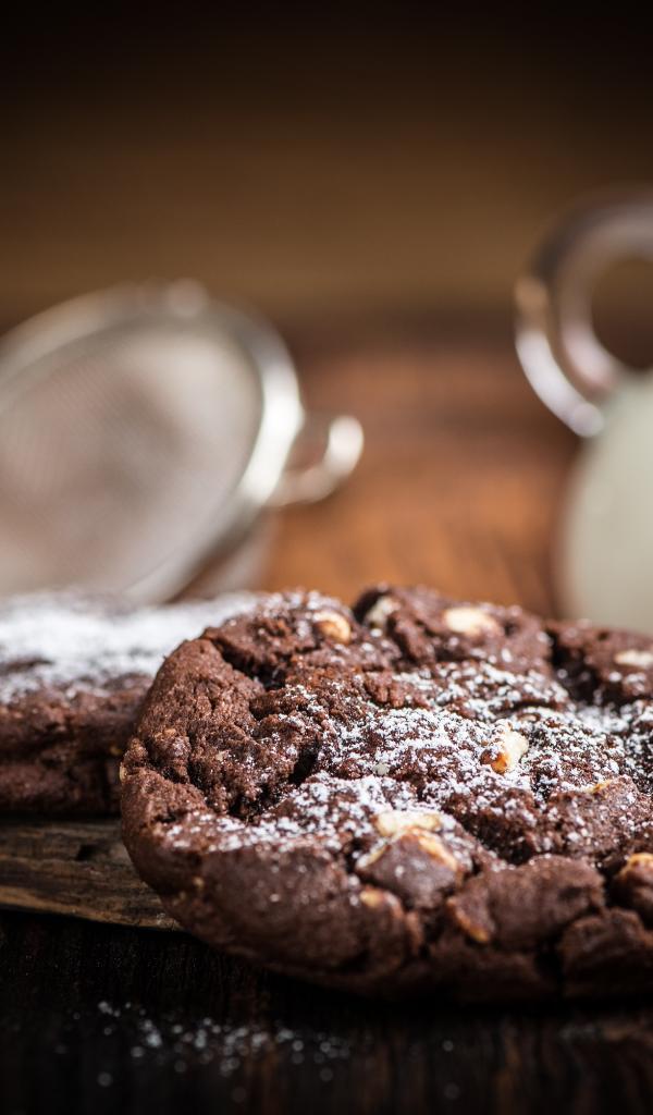 Wallpaper Tasty chocolate cookies with nuts on a table with milk